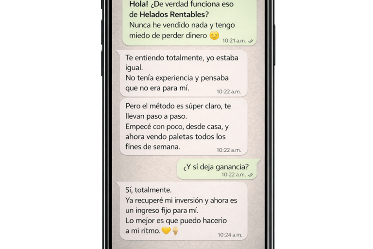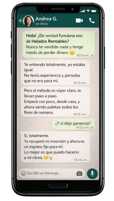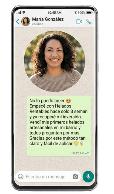 Testimonios reales de personas que ya están viviendo una nueva experiencia de ingresos y organización gracias al método Helados Rentables.